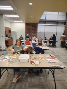 On September 13th, we participated in the Gathering of the Guilds, sponsored by the Cincinnati Weavers Guild. Our display featured beautiful baskets handcrafted by our members, which were available for purchase. We also offered two fun make-and-take activities—Windmill Knots and Woven Tags—that were a big hit with visitors. Throughout the day, we enjoyed sharing information about our guild and connecting with people interested in basket weaving.